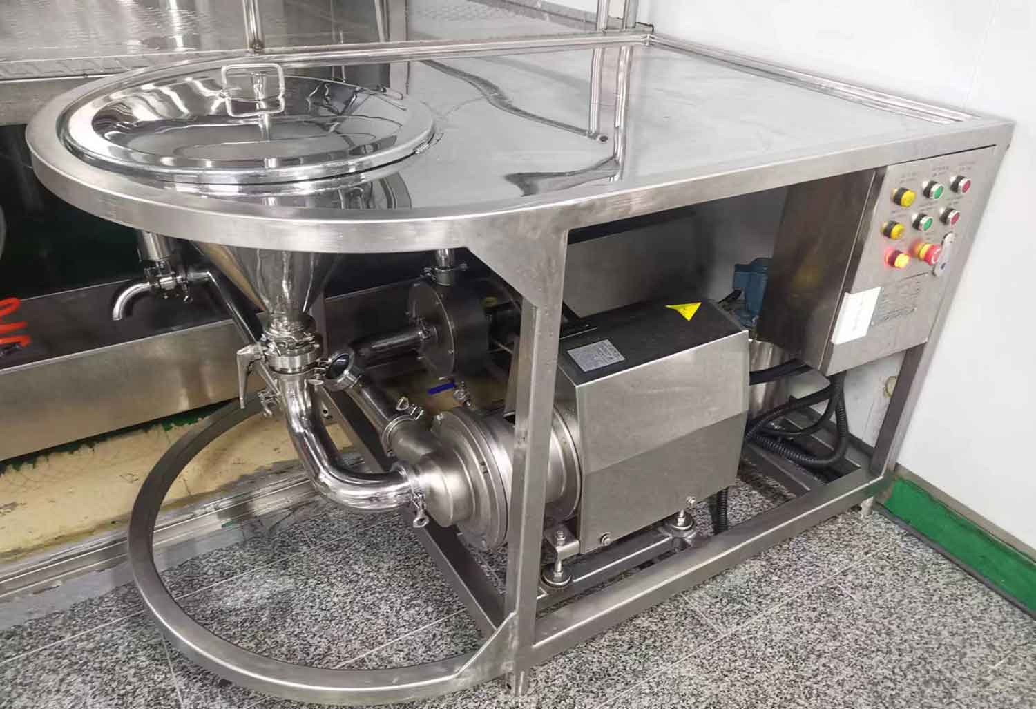 加料器:V型干粉加料口,带有可调节的卫生阀门。